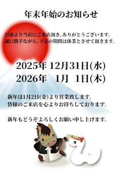 みなさま🫶🏻こんばんは🌙 リサです😊 本日12/31は店休日となっております。 2025年もたくさんのお客様にご来店いただきありがとうございましたm(_ _)m 来年もよろしくお願いいたします🥺 それではみなさま良いお年を🙌🏻